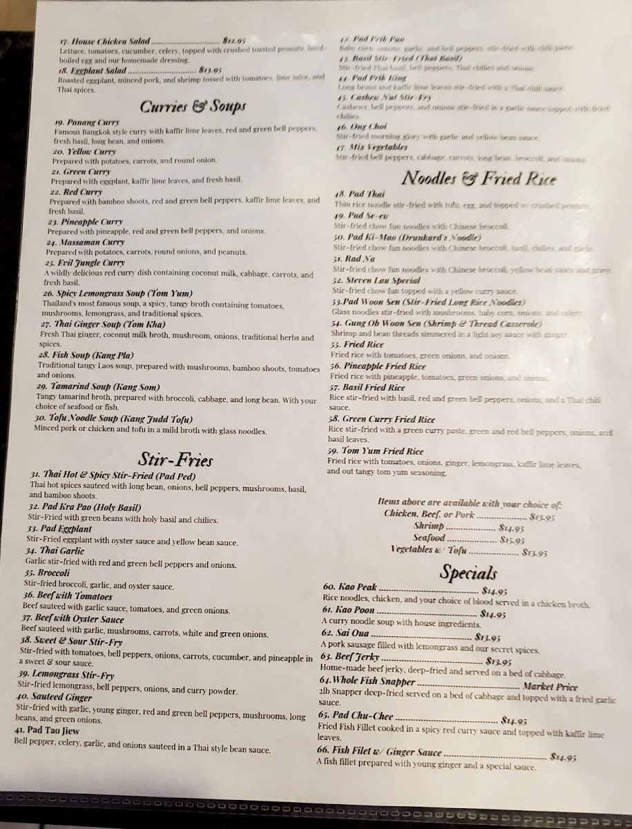 Start with tantalizing stir-fries like the Pad Eggplant, swimming in rich yellow bean sauce or the spicy Pad Kra Pao with holy basil and chilies. Customers rave about the satisfying Pad Thai dishes—both seafood and chicken variants—that they claim are among the best around.